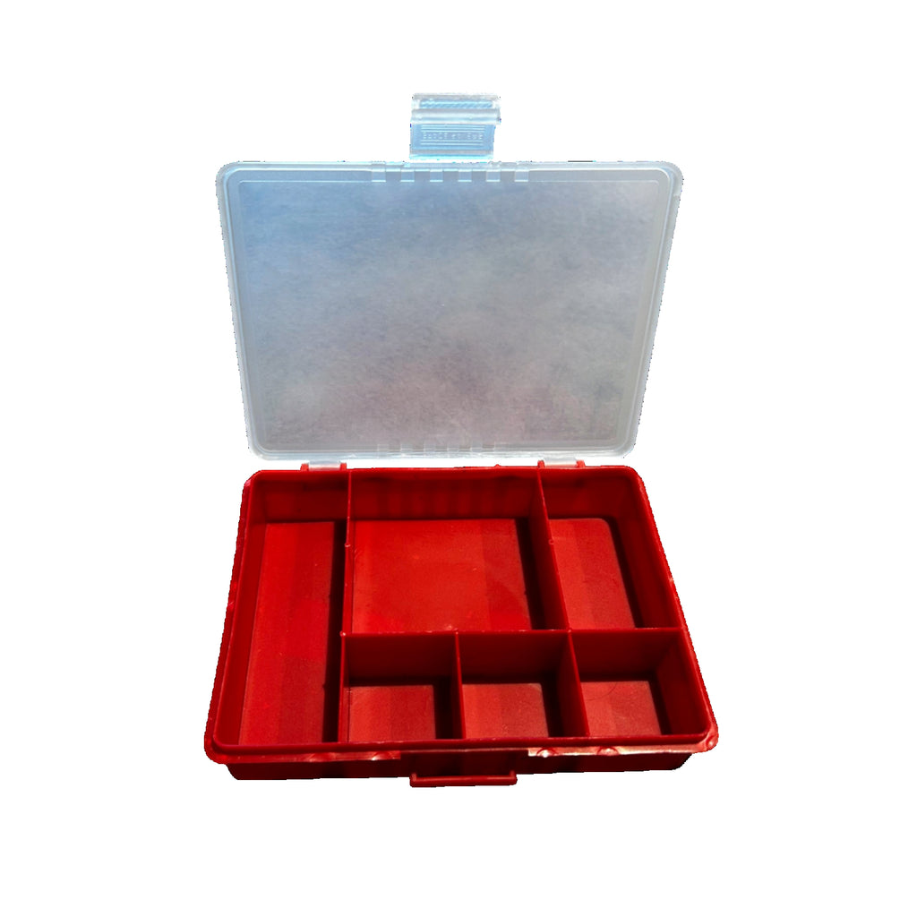 Valigetta plastica a 6 scomparti viteria o altri piccoli utensili. Contenitore di dimensioni 18x13cm, h 2.6cm